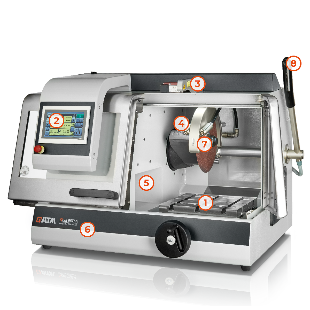 半自动 Qcut 250 A 配备了手柄和自动手柄制动器,可单手操作,使垂直切割或切割轮定位比以前更容易。带 T 型槽的切割台由不锈钢制成,既可与动态自动驱动装置配合使用(允许脉冲切割),也可在手动模式下通过手轮操作(横向切割)。Qcut 250 A 采用久经考验的 QATM 脉冲切割技术,即使切割最难加工的材料,也能获得出色的切割效果。同时拥有自动X轴可在大型工件直切时实现温和切割(摆动式切割)。