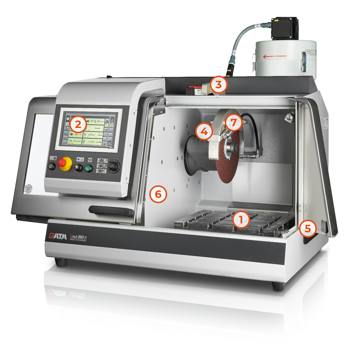 该机器的大型切割室和不锈钢工作台使操作舒适而灵活。丰富的基于软件的功能,如自动接触检测、多位置进程和垂直切割时的切割轮保护罩平行设置,进一步提高了切割过程的可重复性。