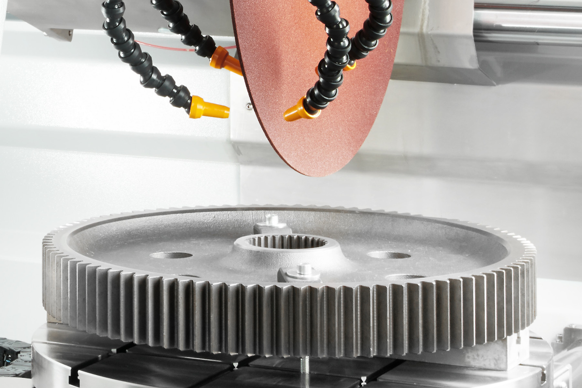 The optional rotation tool features a vertical rotary feed parallel to the wheel with software-controlled angle input.