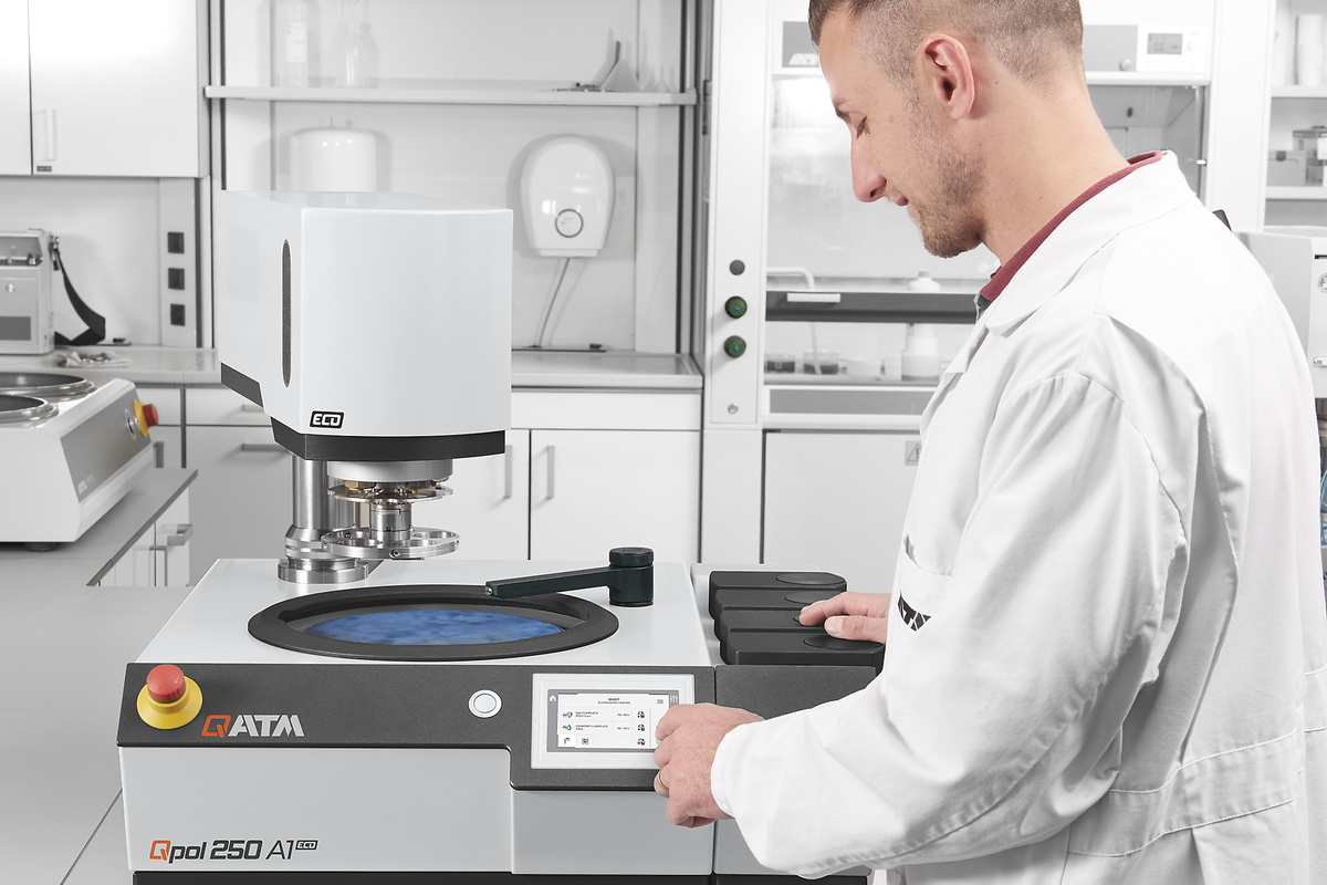 Qpol 300 A2-ECO+是一款自动双盘磨抛机,工作盘直径为250/300mm,通过4.3英寸的触摸屏进行便捷的操作。 新的工作盘装配系统(整盘设计)使得无需承载底盘即可提供全面的性能。控制软件可以编辑和储存多达200种制备方法,并通过用户账号管理进行保护。 压力、转速和旋转方向(磨抛头和工作盘)均可调节。磨盘脱水旋转功能(清洁加速)在制样过程结束时以750rpm的转速旋转3秒钟,有助于磨抛介质甩干。 坚实的设备可以结合加液系统Qdoser ECO或Qdoser ONE使用,为用户的制样和操作便利性提供最大的灵活性。