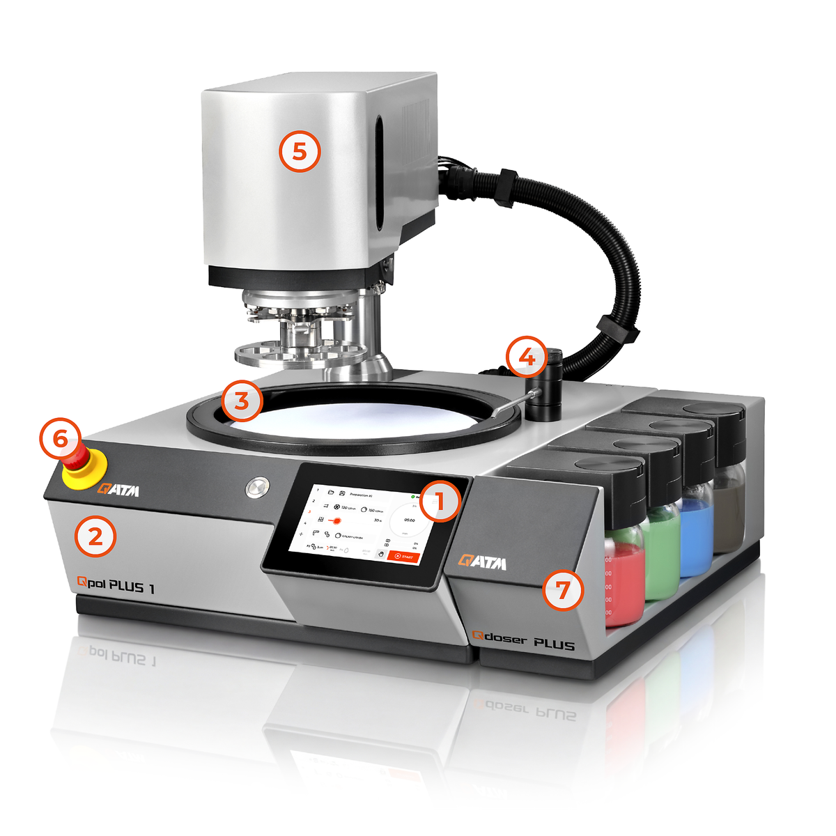The Qpol PLUS 1 and PLUS 2 are automatic, single wheel or twin wheel grinding and polishing machines that can operate using either single or central pressure. They are suitable for working wheels with a diameter of 200/250/300 mm. The high-performance PLUS head also allows the use of large sample holders with diameters up to 185 mm (central pressure).