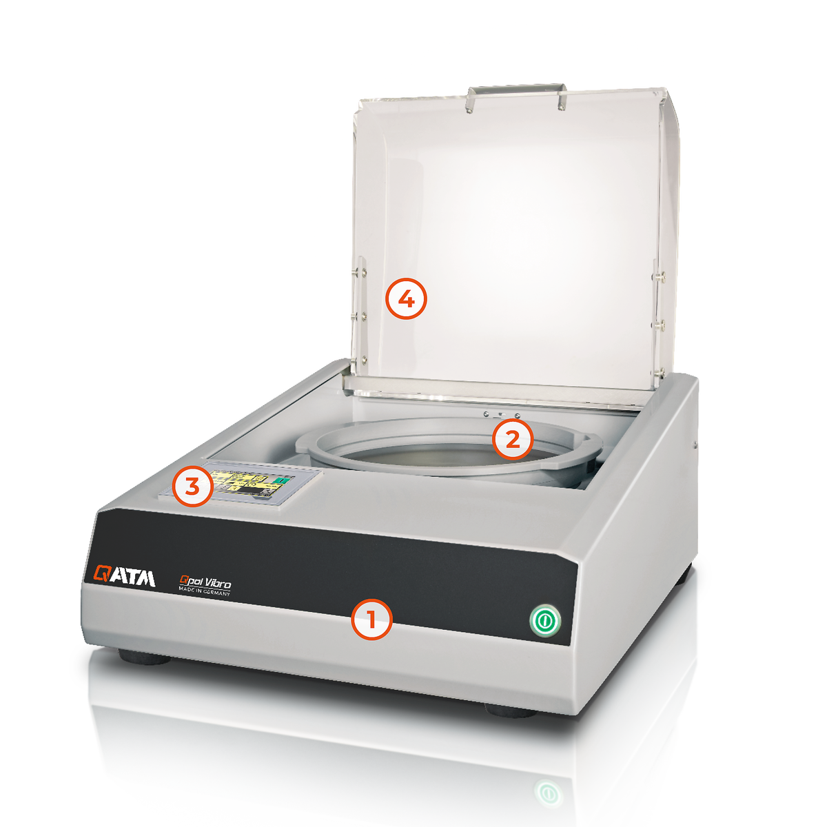 透明的、阻尼关闭的铰链式罩子展示了 QATM 机器和设备的高品质。它保护悬浮液和样本免受污染,以实现最佳的制备结果。Qpol Vibro 提供了丰富的功能,但仍然紧凑轻巧 - 仅重 45 公斤,非常适合作为台式设备使用。