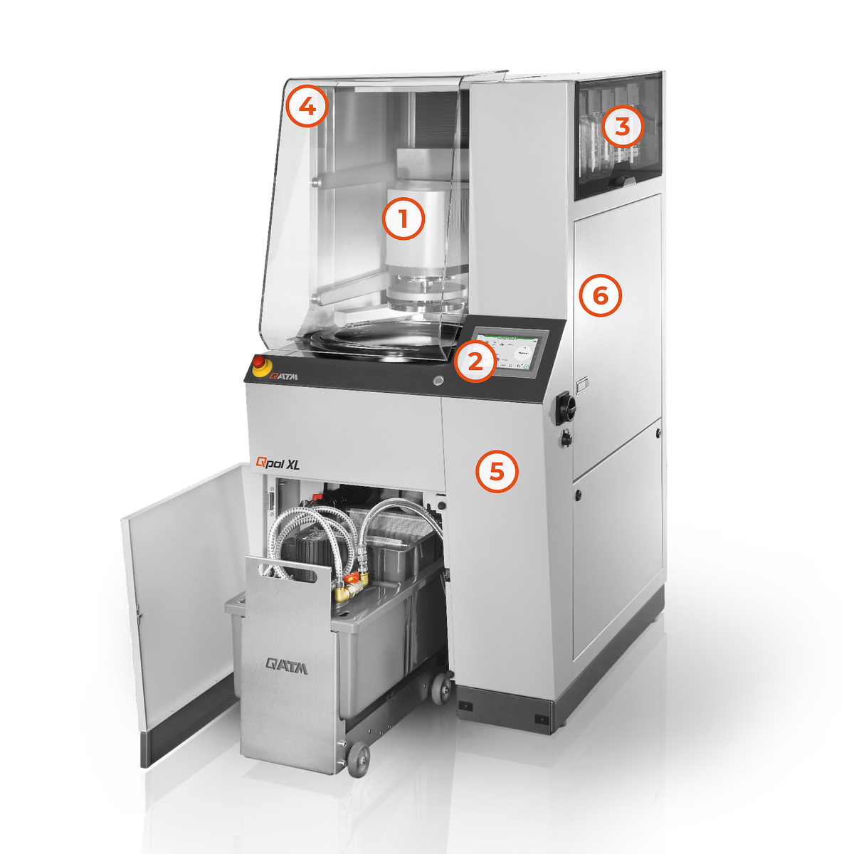 自动加液系统可配备磁力搅拌装置。自动搅拌可确保悬浮液在使用前所含磨料颗粒处于最佳分布状态。这种匀质化的过程显著改善了制备效果。新的悬浮液液位检测在悬浮液用完之前会发出警告,同时即使在程序运行过程中也可以随时对悬浮液进行补充。