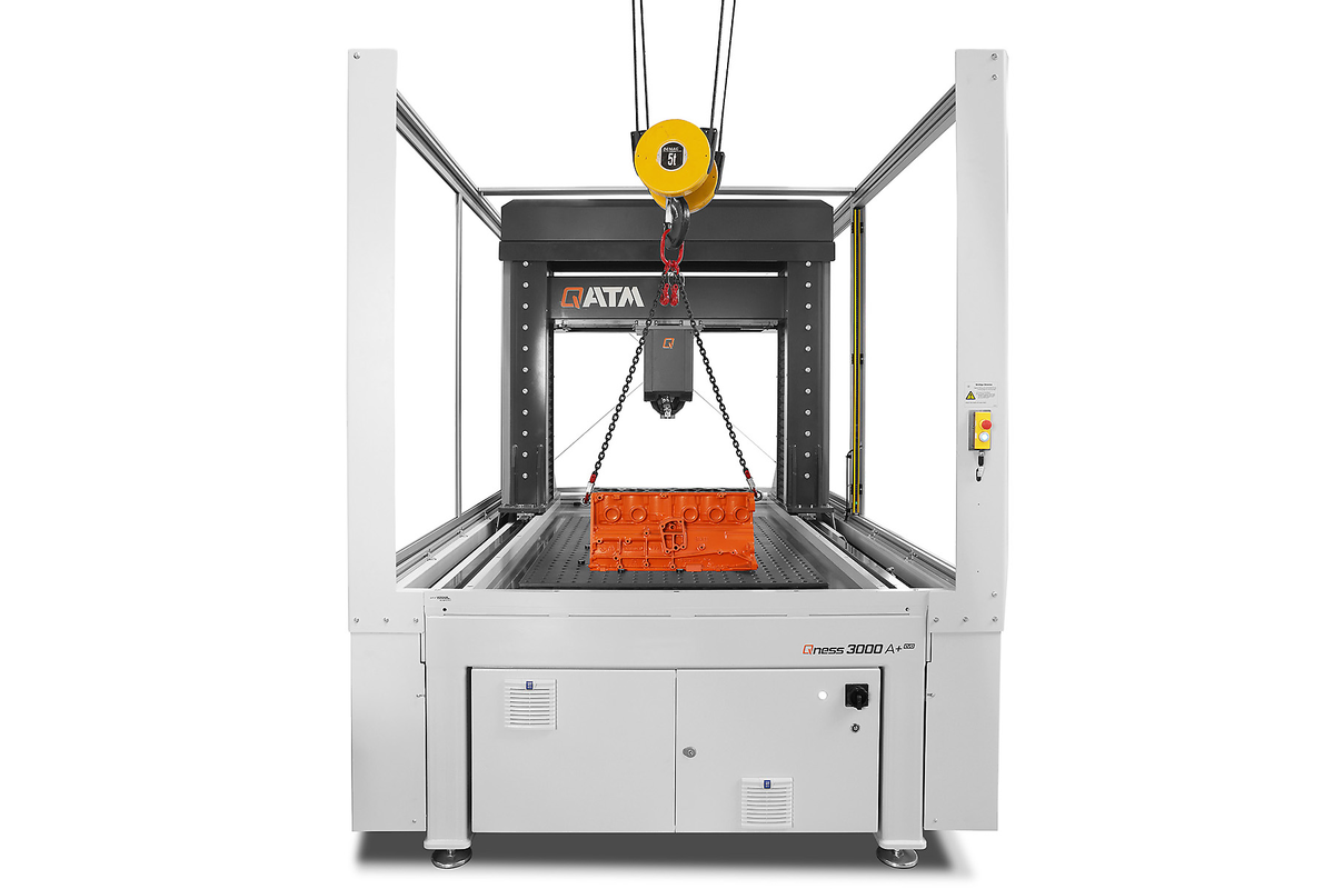 The "Qness 3000 A+ EVO" Makro Universal hardness tester was chosen as the basis for this special solution. This machine has the necessary stability, strength, robustness and is designed for industrial environments. However, this has been further developed for even larger and extended testing tasks for dimensions that surpass all other manufacturers on the market